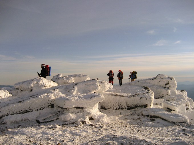 The gang at Mt Lafayette. We had a great fortune to have most part of the day calm and sunny. Only after N. Lincoln did we started to get some wind. | |