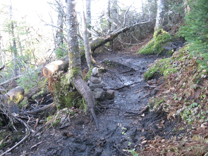 I ran into Jason 2/3 of the way up the herbpath, he was on his way down. I was feeling so bad at the time that I was thinking about heading down with him. But I didn't. I was almost crawling my way up on this fairly gradual trail. I moved slowly and finally made it up to the ridge. Here is a small cairn marking the trail. I decided to take a left turn to tag Seward first since it is the tallest of the 3. |