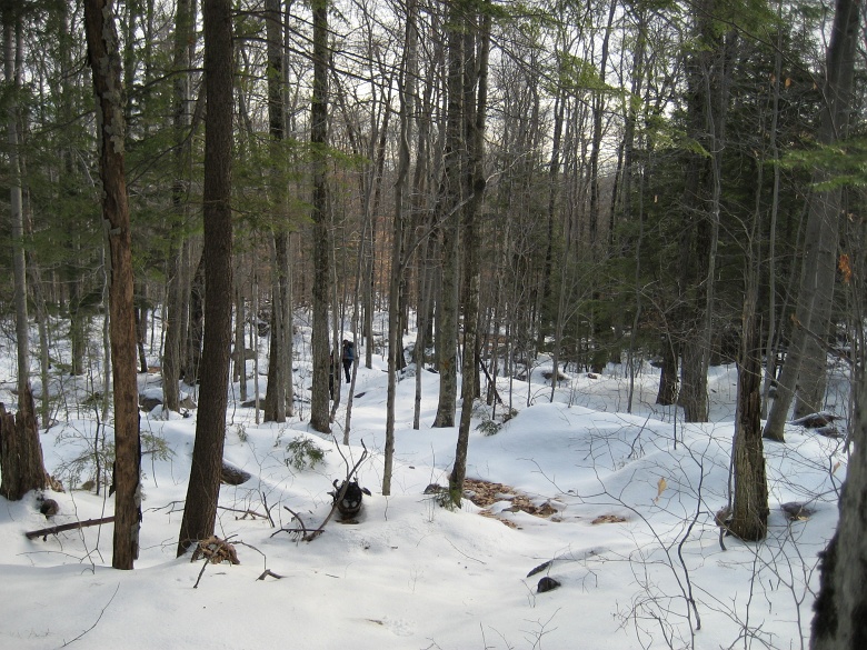 We're the first to hike this trail since the last now fall. Although the trail was only covered with thin snow, but the scarce trail blaze made finding the trail somewhat difficult. | |