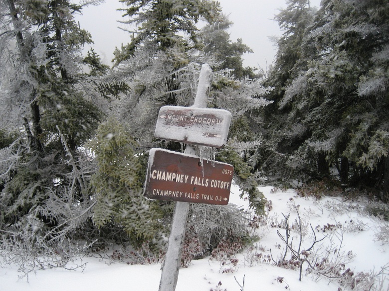| We barely managed to find the trail to get to the Champney Falls junction only to lost it again shortly after. I voiced my concern and the group made the decision that it's time to turn around. Despite we're already half way into our journey at the point where we turned around, but there were no gaurantee the remaining less than half of the journey would be easy to find. Turning around at least gaurantee us our own foot prints to follow. We took our time and got out of the woods after 8:30 ish. I would love to go back and attempt the same route again, hopefully with better visibility and a earlier start :). |