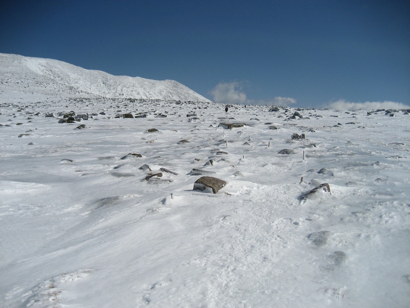 Heading toward Baxter Peak. The hotspot on my right heel began to hurt real bad, I stopped here to patch the wound. A gust of wind blew away my blister kit right after I patched up my right heel, the left heel only got some duct tapes from Kim. |