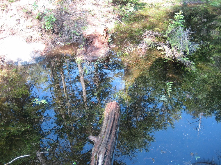 We wandered along the pool looking for good place to cross. This looked promissing but the end of the log was floating on the water, no way I can hop to the other side. We eventually find a place further up that we both can safely cross it. |