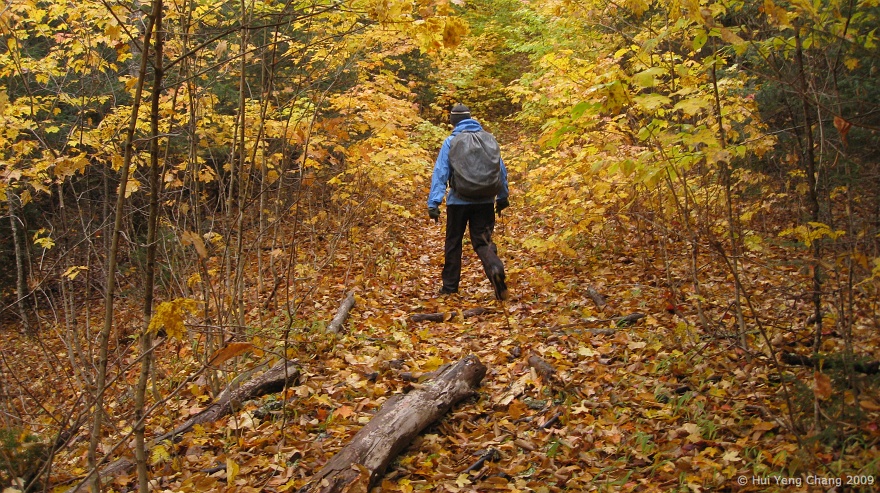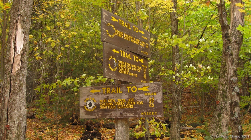 Two of us took our sweet time strolling down the beautiful Calkins Brook trail. But once we arrived at the junction of the horse trail and the trail to BlueBerry Lean-To, the sign at the junction reminded us of a long 9.1 miles back to Duck Hole. The trail to Blue Berry Lean-To was as bad as the trail to Duck Hole, if not worse. We set one destination at a time in order to break down the 9.1 miles to shorter goals. First the trail junction to Seward, where we started this morning, then the lean-tos along the horse trail (Ward Brook truck road), we figured once we get to the swamp, we'll be on the home stretch.