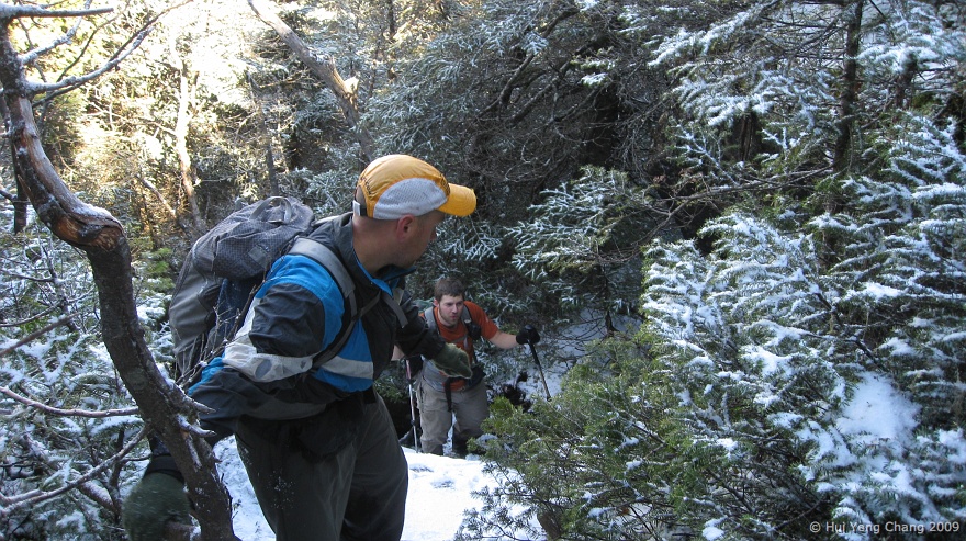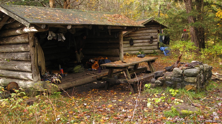 The headlamp went on shortly after we passed the 2 lean-tos along the horse trail. The hike back to the swamp was long but uneventful. Once passed the swamp, it began to snow lightly. I was so happy to see there were fire at the Cold River 2 lean-to, I just shouted out a "Hi" to the strangers. Next thing we saw was the trail to Bradley Pond followed by the register box and the junction to our lean-to! Wooohoo!!