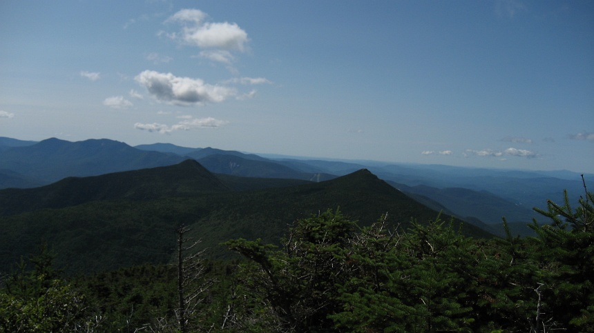 Looking back at Libery and Flume from Little Haystack. A hotspot on my left heel had developed into a blister by now, after treating it and taped both heels with duct tape, I was begin to doubt I would finish the whole loop. | |