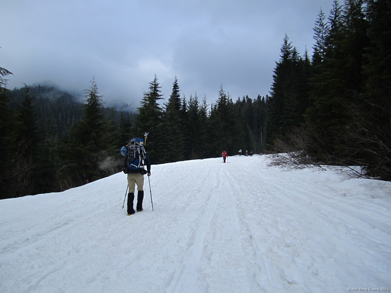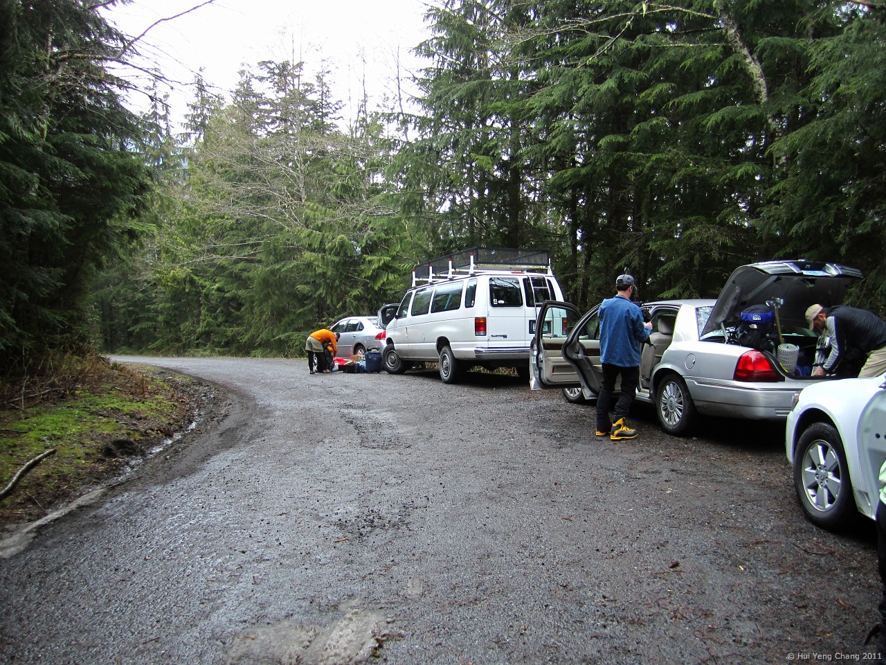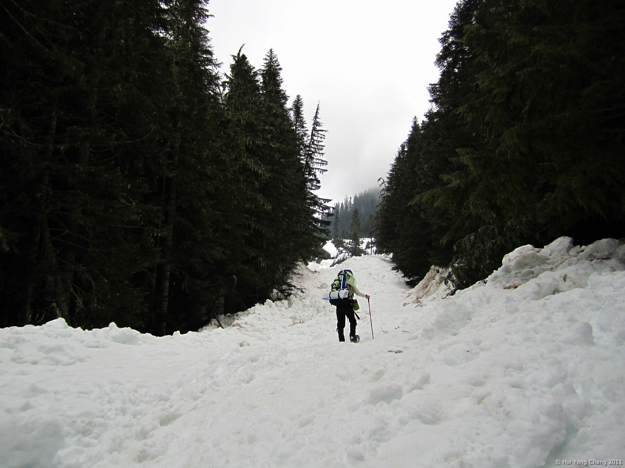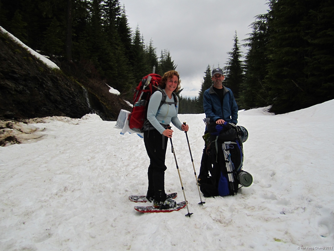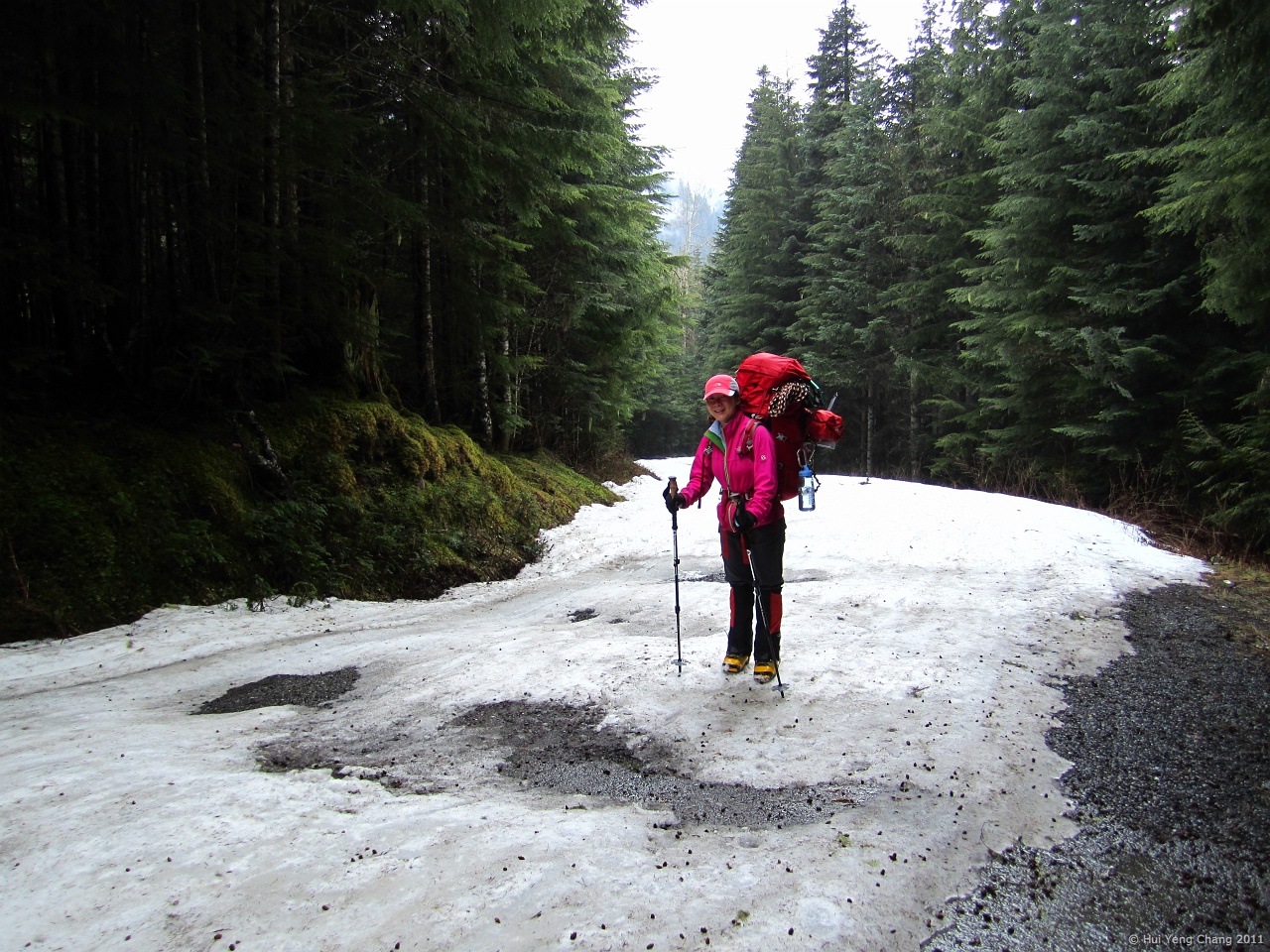 After a quick breakfast at the motel, we packed up our backpack and headed to REI for some last minute supplies. After lunch at Bellingham, we headed to the ranger station, picked up our blue bags and registered, and headed to the trailhead. Since it's still early in the season, we couldn't drive to the trailhead, instead we had a 1.5 miles road walk to warm up.
