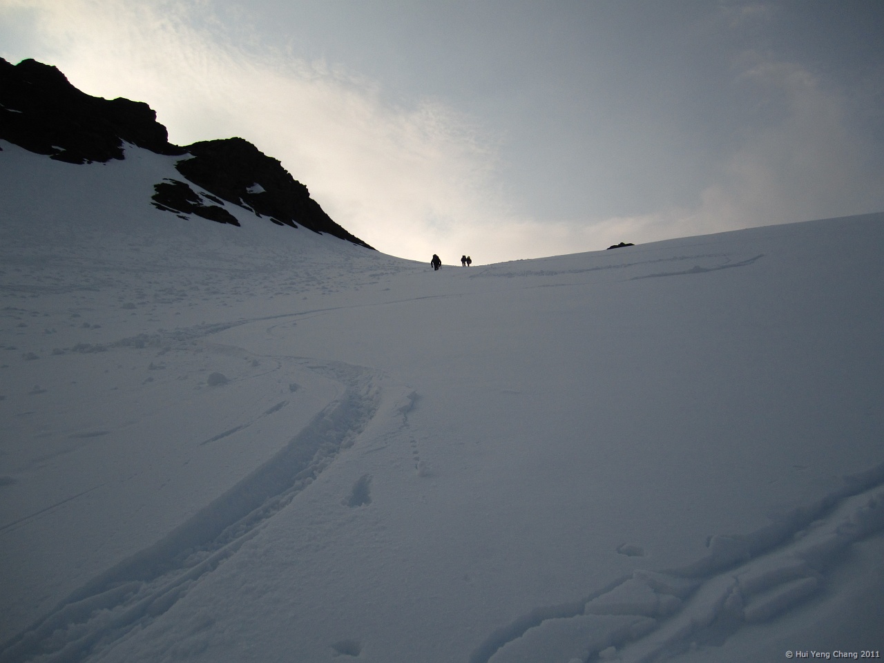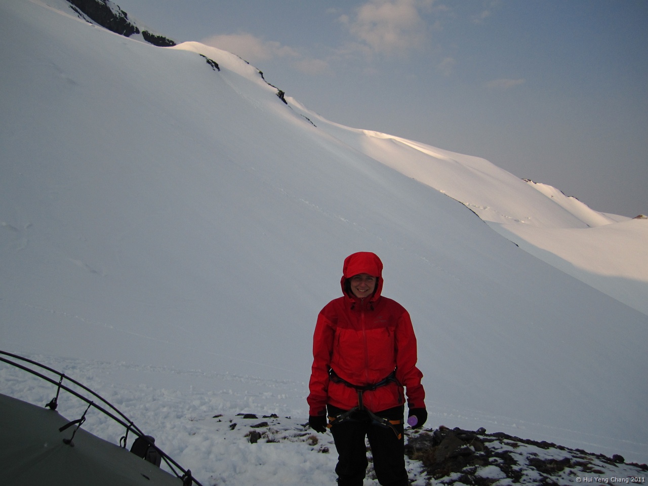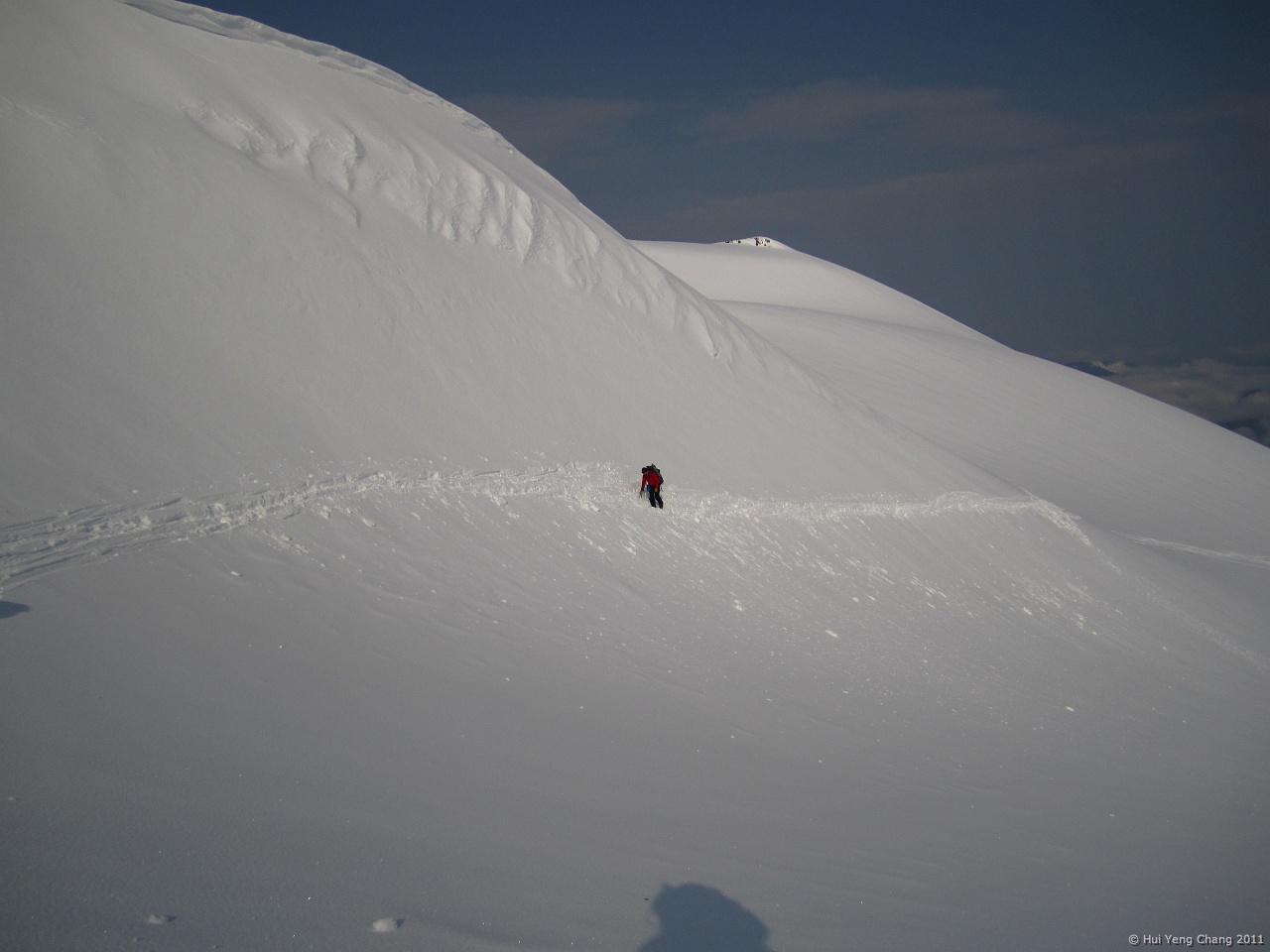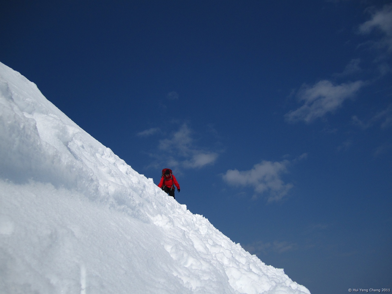 Climbing up a steep snowfield with your crampons balling-up every step you took was very unnerving, ehhh... coming down would be even worst :(