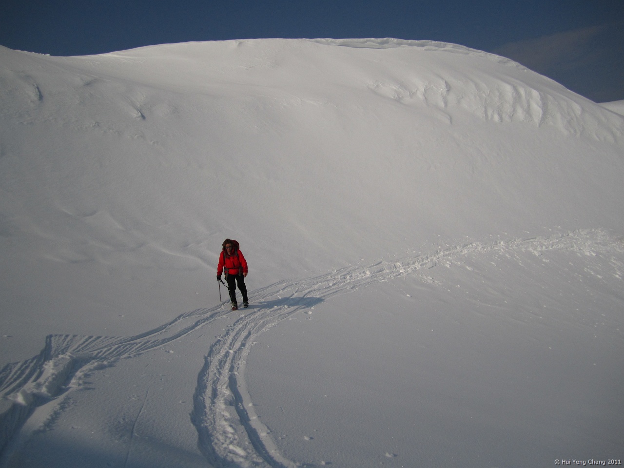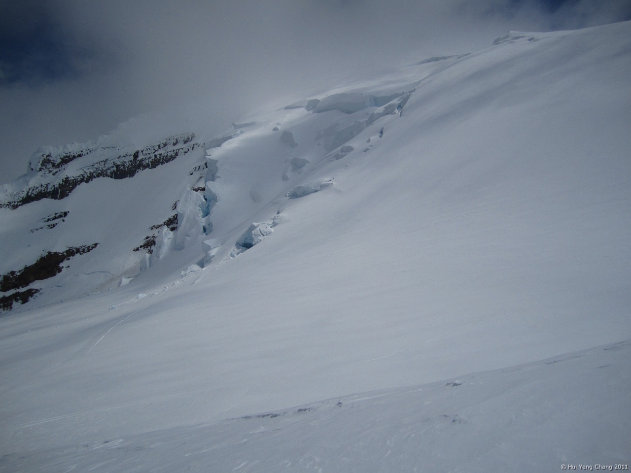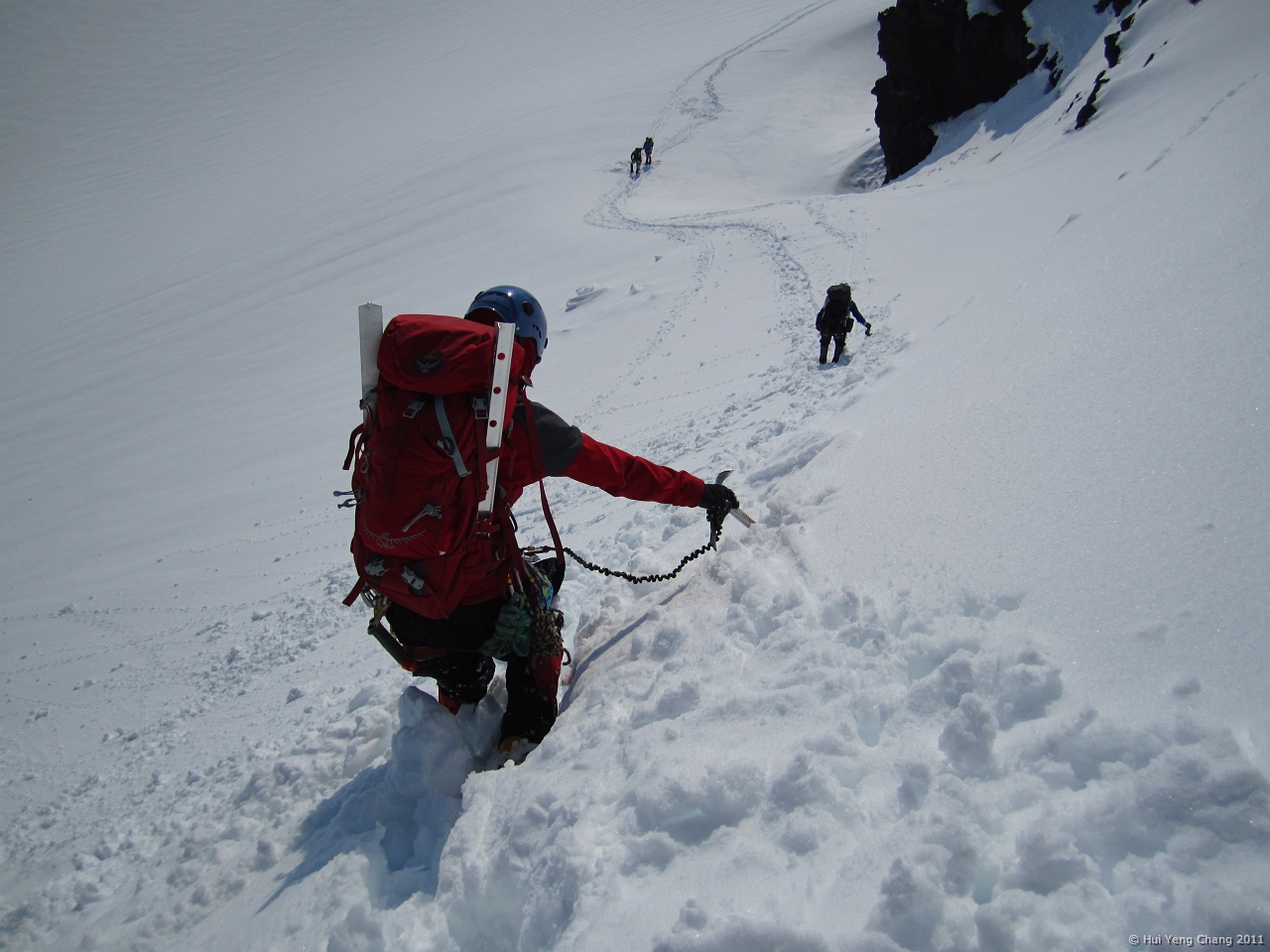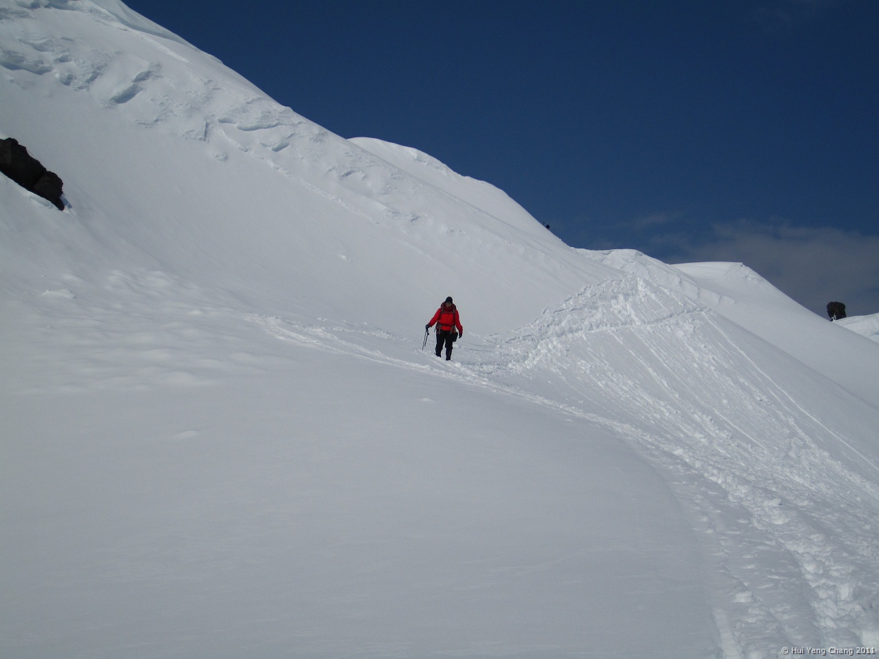 Climbing up a steep snowfield with your crampons balling-up every step you took was very unnerving, ehhh... coming down would be even worst :(