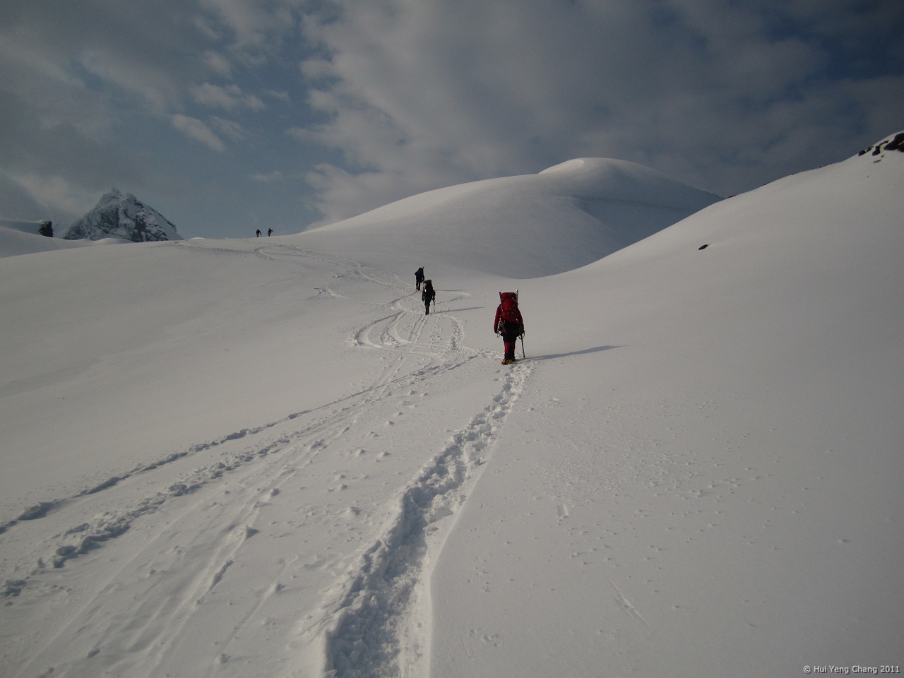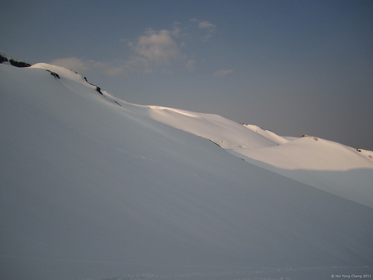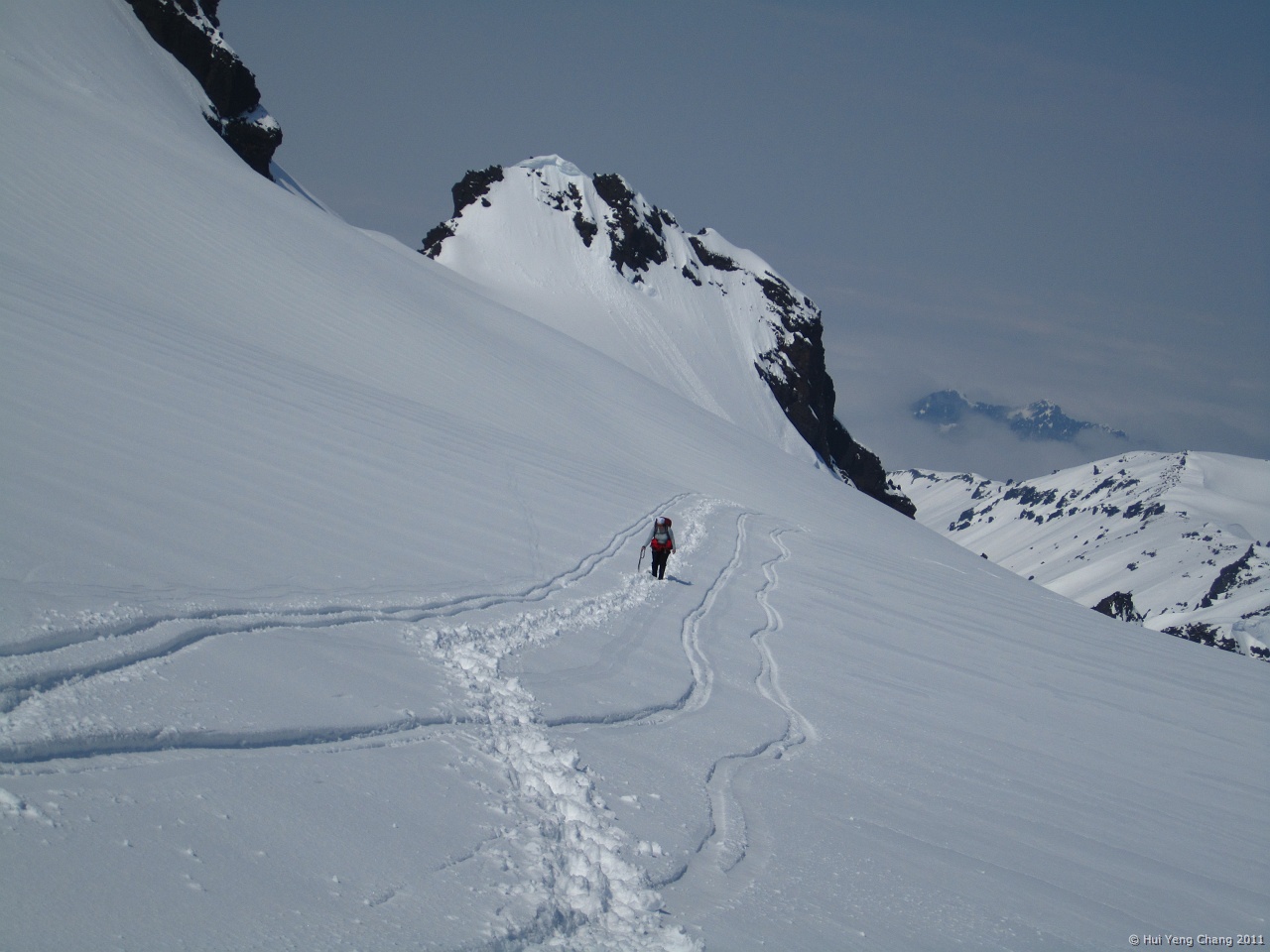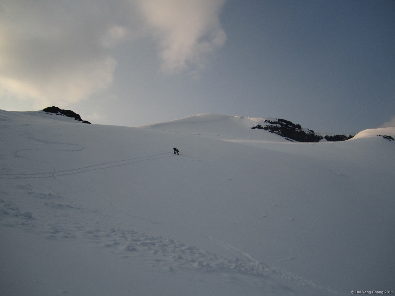 Climbing up a steep snowfield with your crampons balling-up every step you took was very unnerving, ehhh... coming down would be even worst :(