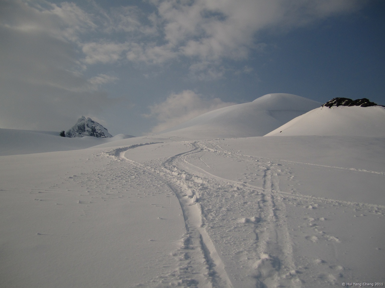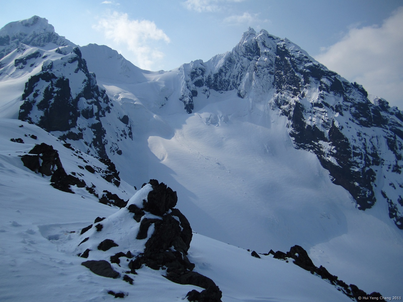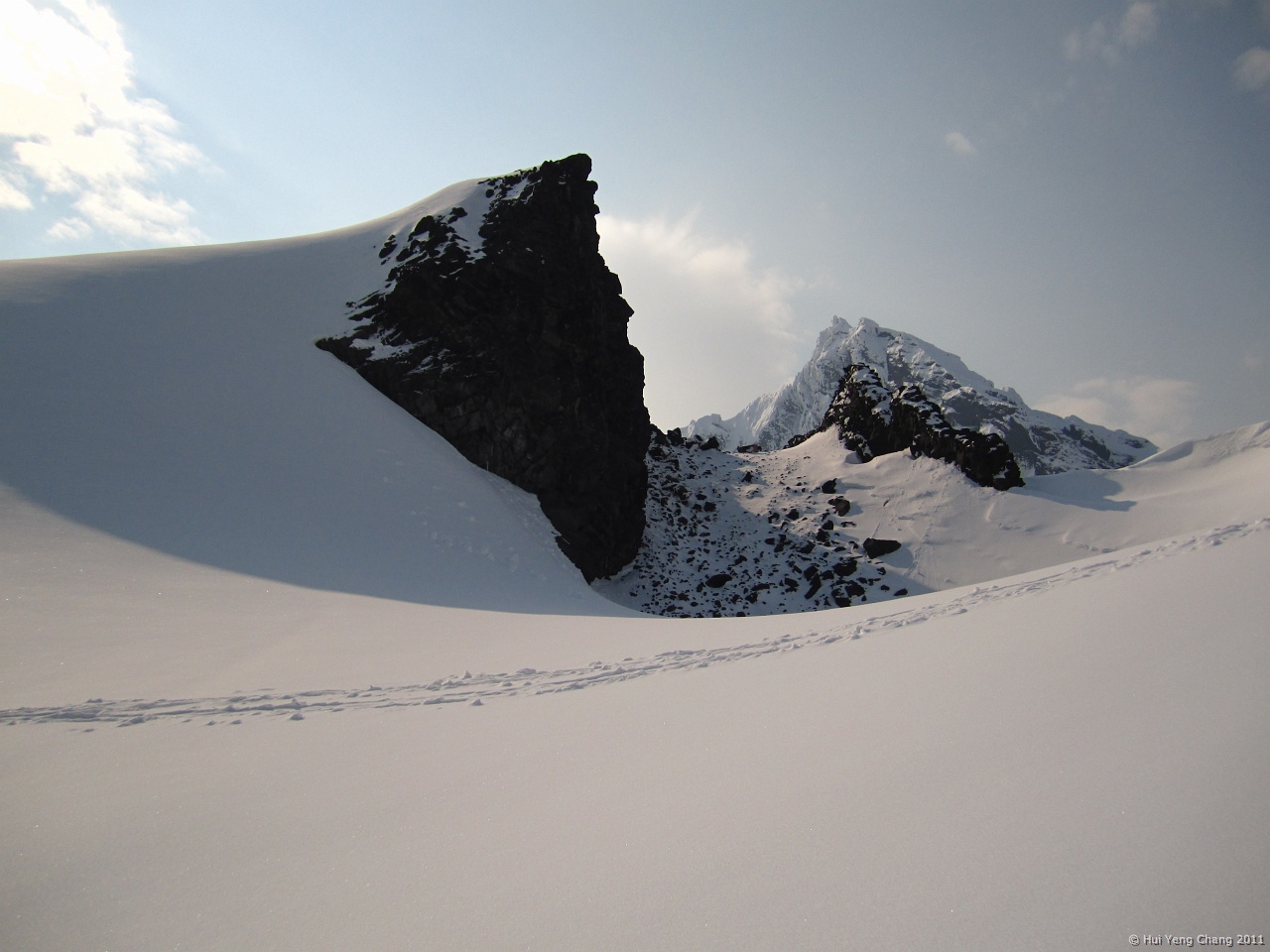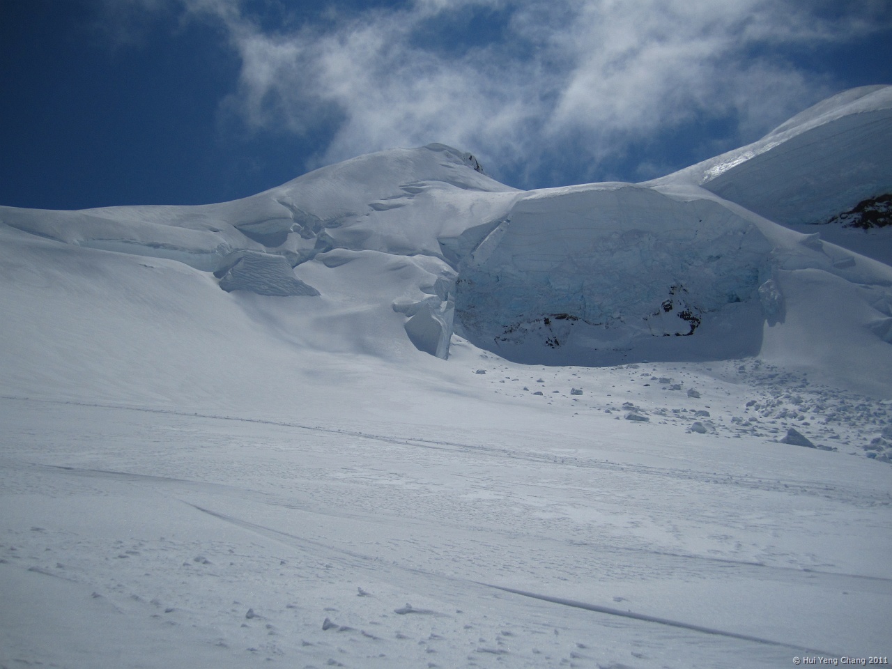 Climbing up a steep snowfield with your crampons balling-up every step you took was very unnerving, ehhh... coming down would be even worst :(