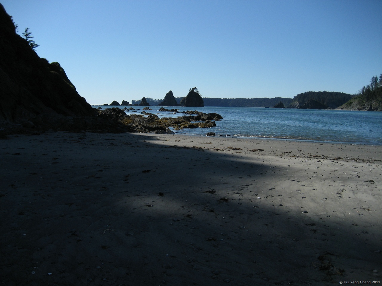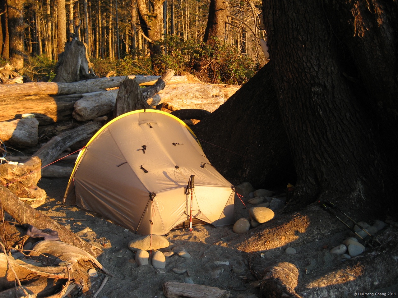 On the way back, few smaller tidal pools had formed, we looked for star fish but was fruitless. Instead there were many sea anemone, and bald eagles gliding above us. Once got back to "our" beach, we gathered wood, made fire ring thinking that we'll have a nice fire tonight, but the darkness never came. We sat around, cooked dinner and watch sunset on the beach. Around ten o'clock when we headed into the tent, it was still pretty bright out.