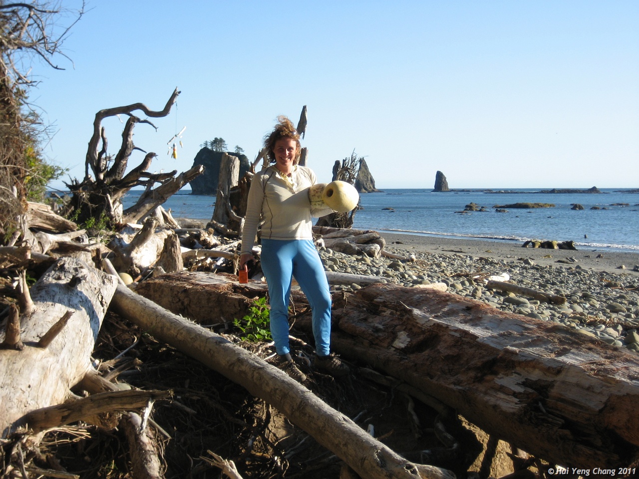 Doug had recommend a couple of sightseeing options, the Third Beach sounded particularly interesting. After checking out the map, we found out that there were camp sites along the coast, so we decided to make it a backpacking trip. We're promised tide pools, sea stacks and star fish littered the beach, these were all new to me. I was excited about the unknown, backpacking to the beach, how hard can it be? We're told there were upland trails that we needed to take; rope ladders to climb over cliff and bluff. Sounded like a fun obstacle course. So we picked up our permit, bear canister, tide chart, packed our backpack for 2 days of food, and headed to the Pacific coast! I love backpacking, it gives me a sense of self-sufficiency, sense of freedom, everything I need is on my back.