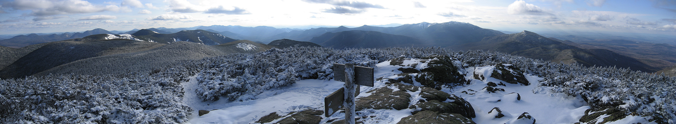 Arrived at the summit of South Twin Mountain. Looking southward at the Bonds. Franconia Ridge and Garfield are on the right.